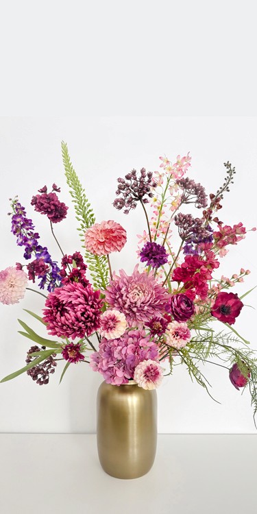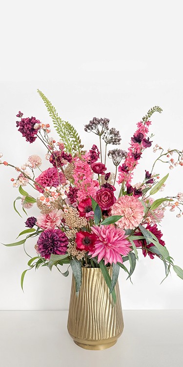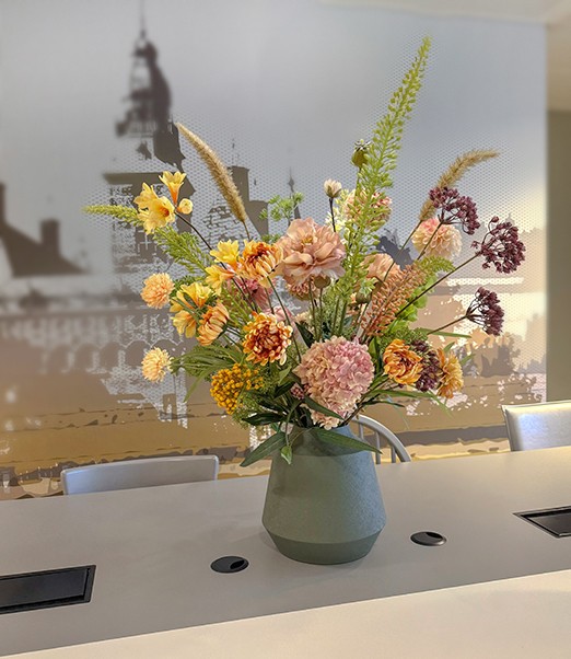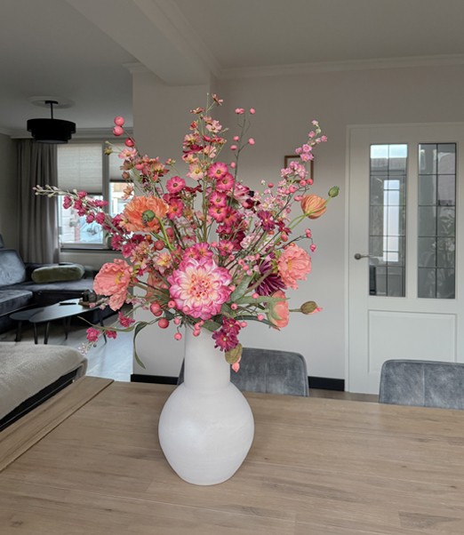 Ik help graag om een ruimte sfeervol te maken met mijn zijden bloem creaties. Of je nu kiest voor permanent of tijdelijk, elke creatie wordt met zorg gemaakt, helemaal afgestemd op jouw wensen